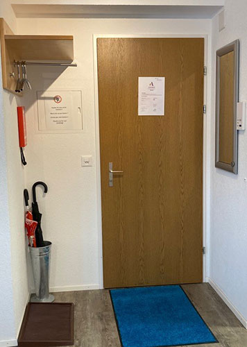 Nichtraucher Studio 35 m2 mit Parkettboden, Balkon süd/ost. Tisch & 2 Stühle. Offene Küche, gemütlicher Wohn-Schlafraum mit Esstisch,
