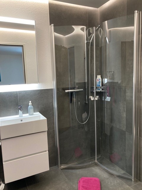 Sofa und Doppelbett, Schrank, Dusche/WC